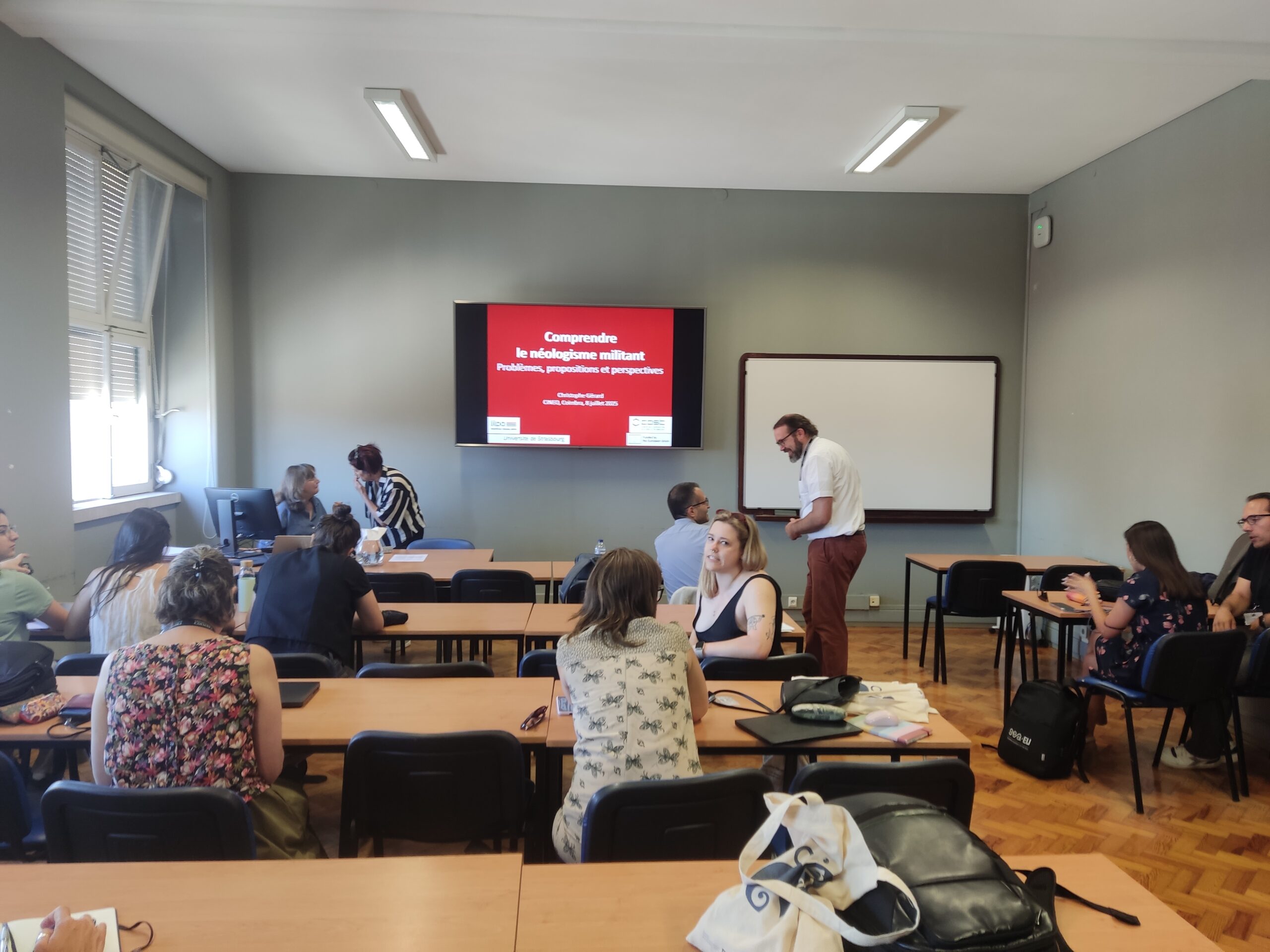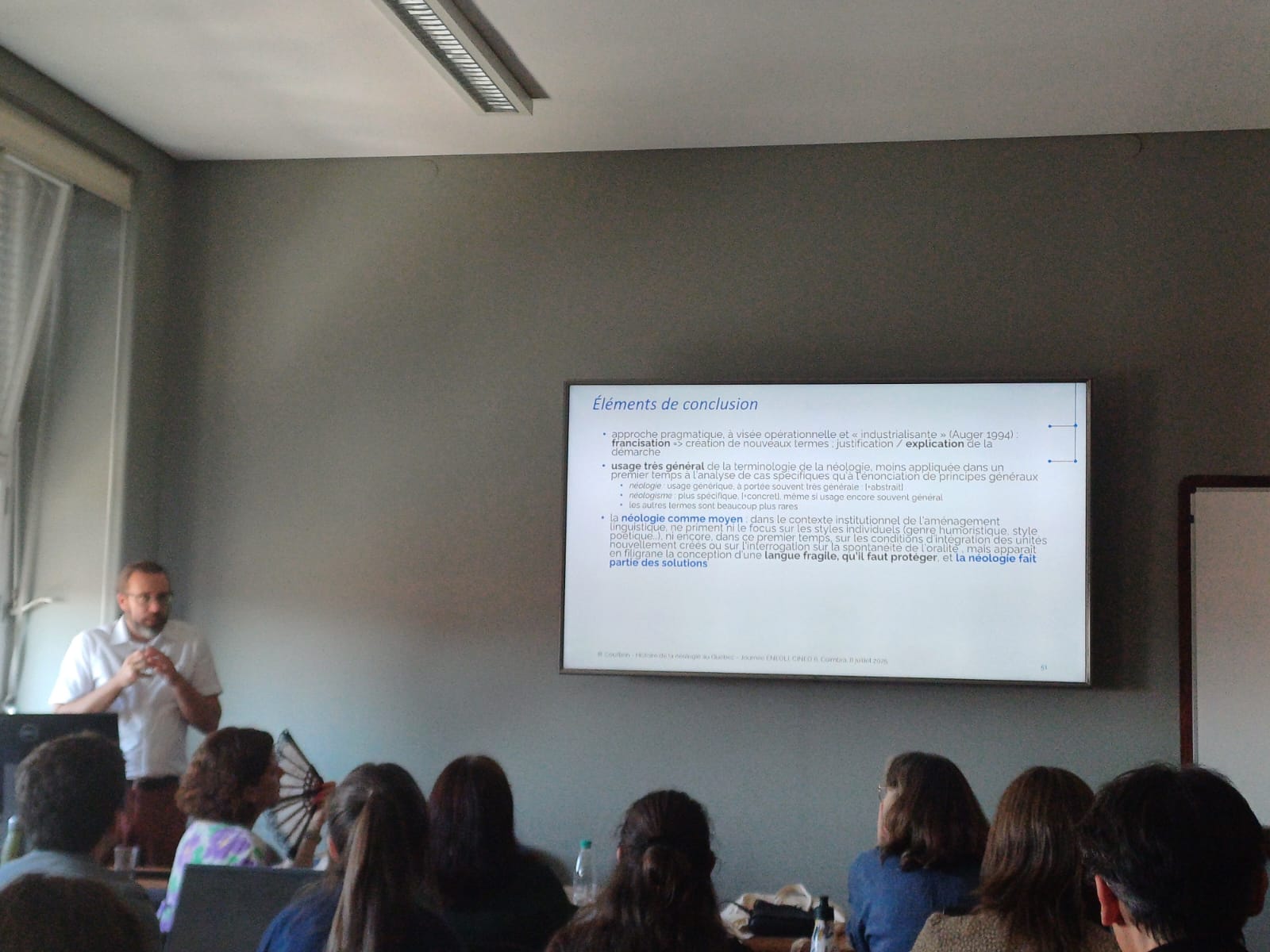 The workshop featured nine peer-reviewed presentations in four Romance languages (French, Galician, Portuguese, and Spanish), organized into three thematic sessions: “Neology and Society”, “Lexical Innovation: Evolutions, Challenges and Applications”, and “Morphological Approaches”.